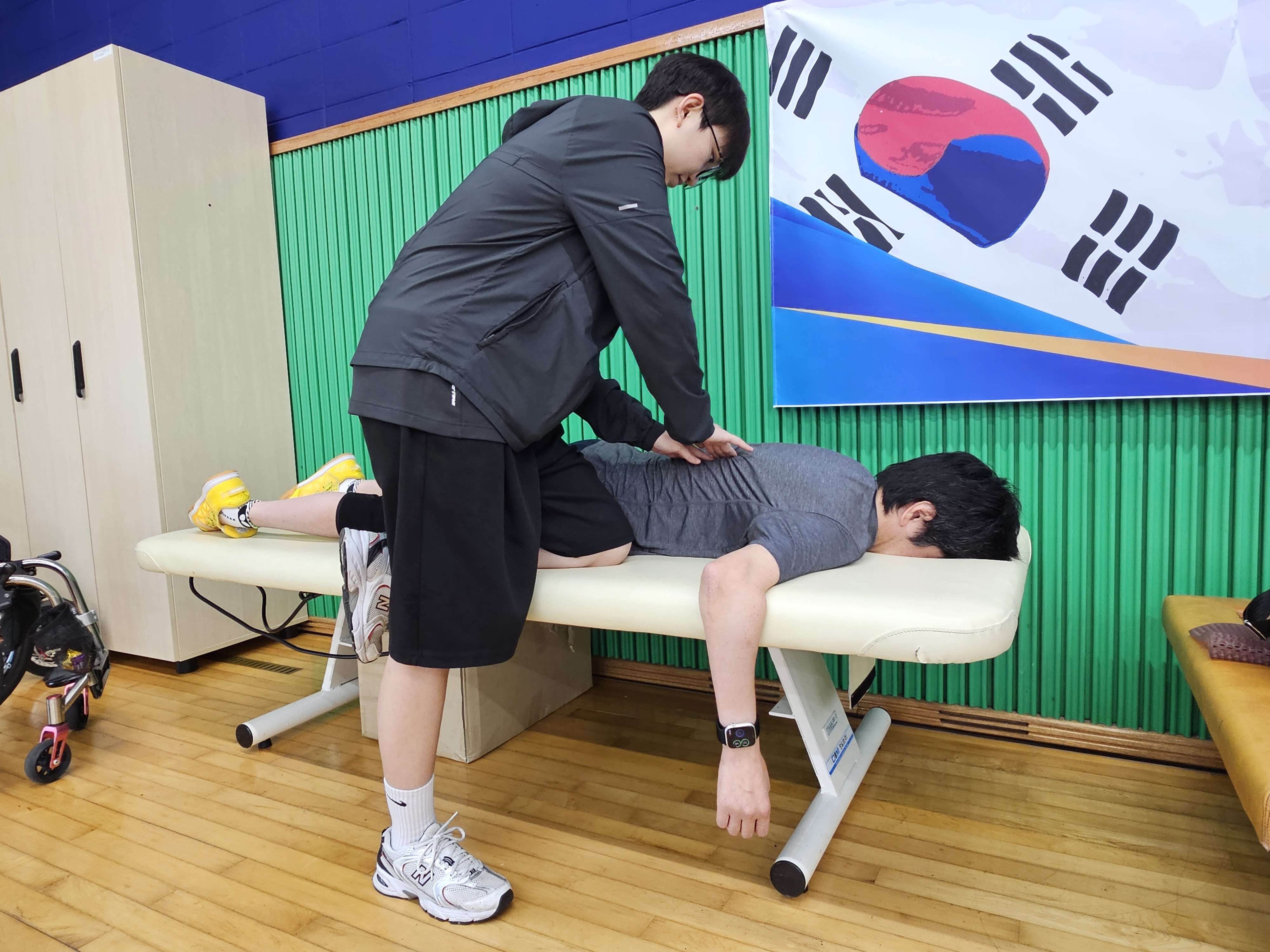 최*현 학생은 현장에서 소중한 실무 경험을 쌓으며, 우리나라 대표 선수들의 부상 예방과 경기력 향상을 위해 최선을 다하고 있습니다.