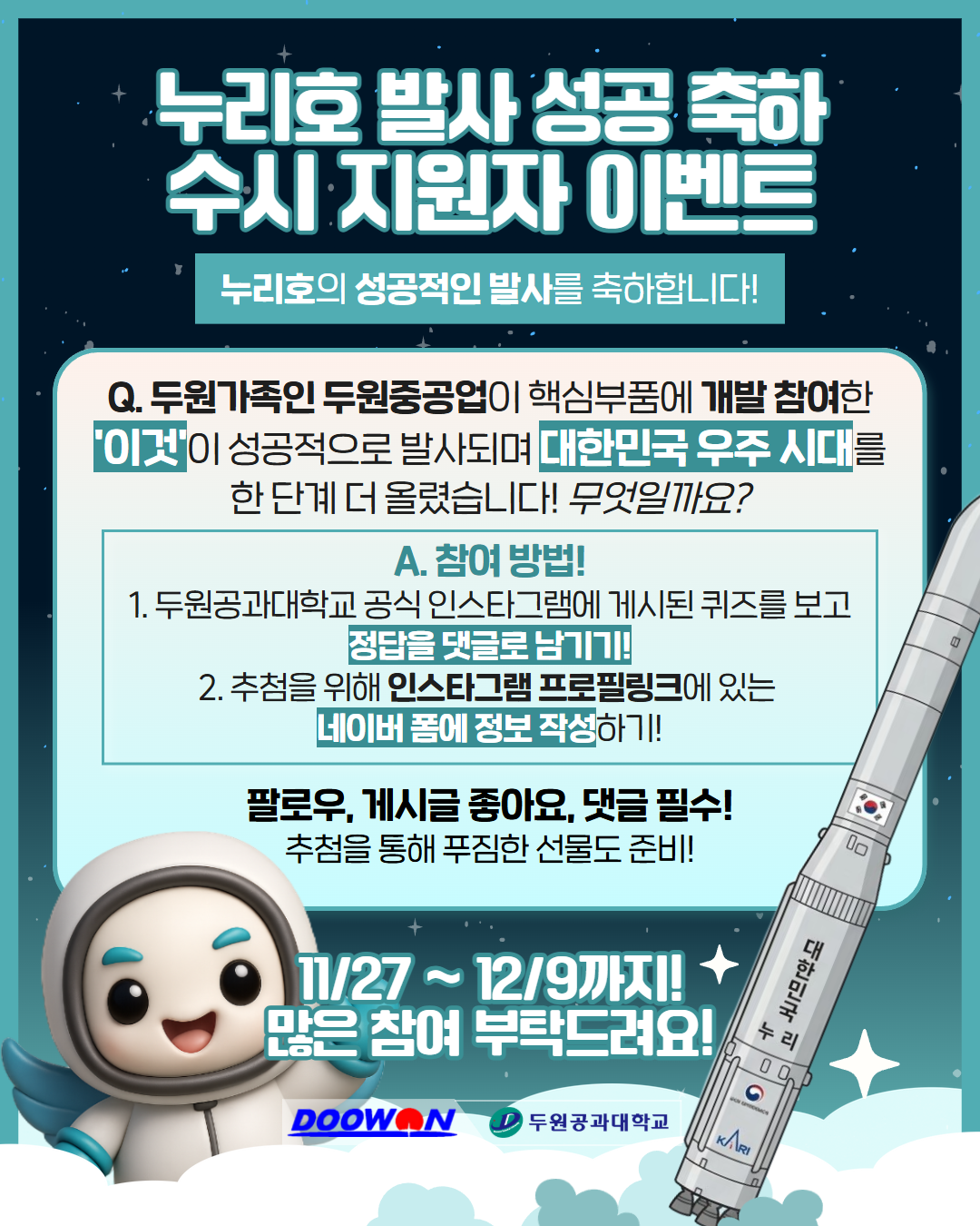 많은 참여 부탁드려요! (본 이벤트는 두원공과대학교 수시 지원자 대상으로만 추첨)